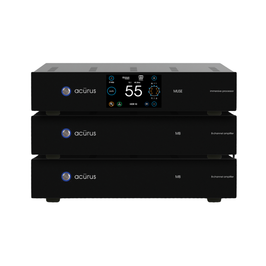The M8 uses a patented class D amplifier topology that is incredibly efficient, quiet, and free of any hint of audio distortion. While the M8 is ideally paired with the Acurus Muse immersive processor for a supreme marriage of world-renowned Acurus audio engineering, this amplifier is flexible enough to pair up with virtually any high-quality pre-amplifier to deliver high power and outstanding audio specifications.
