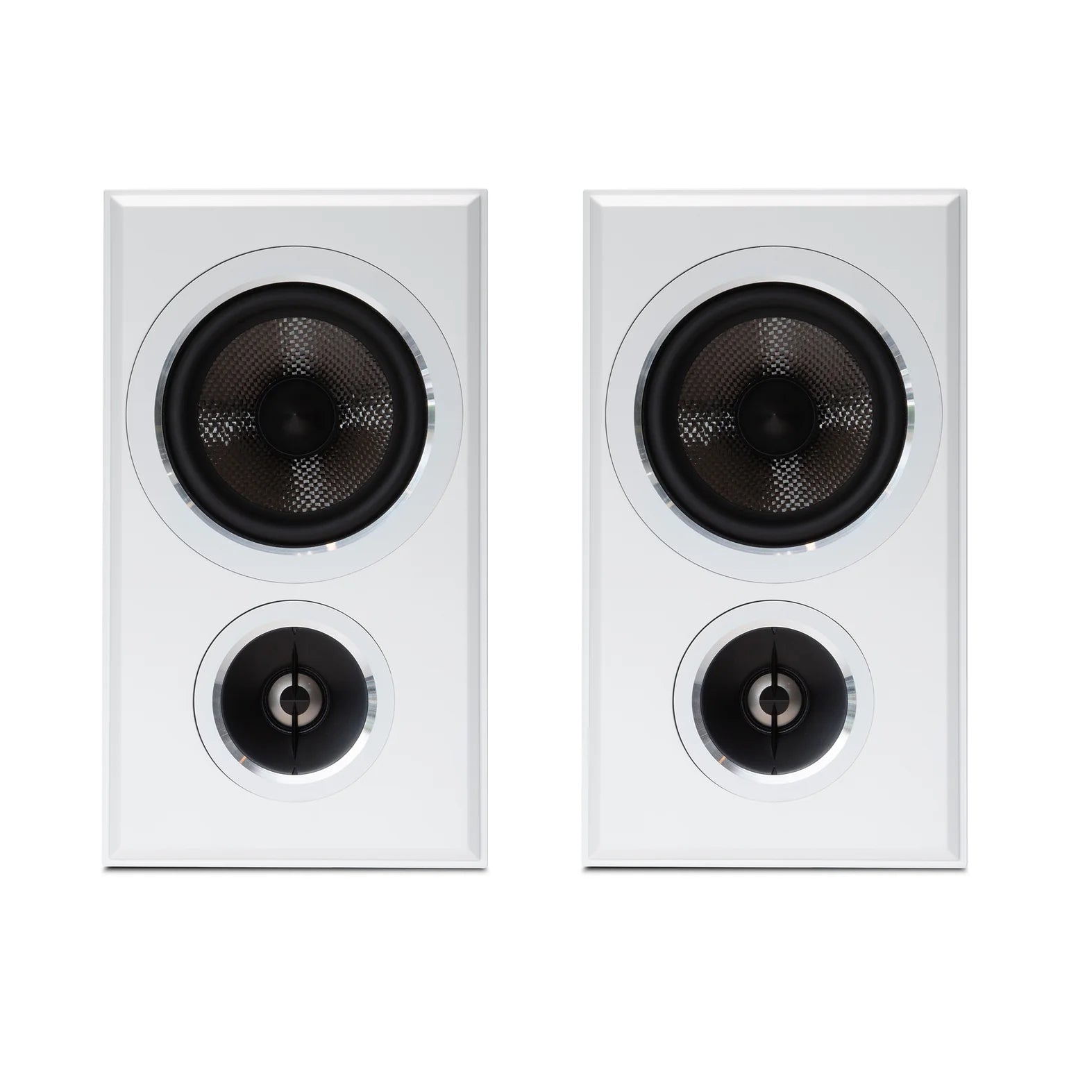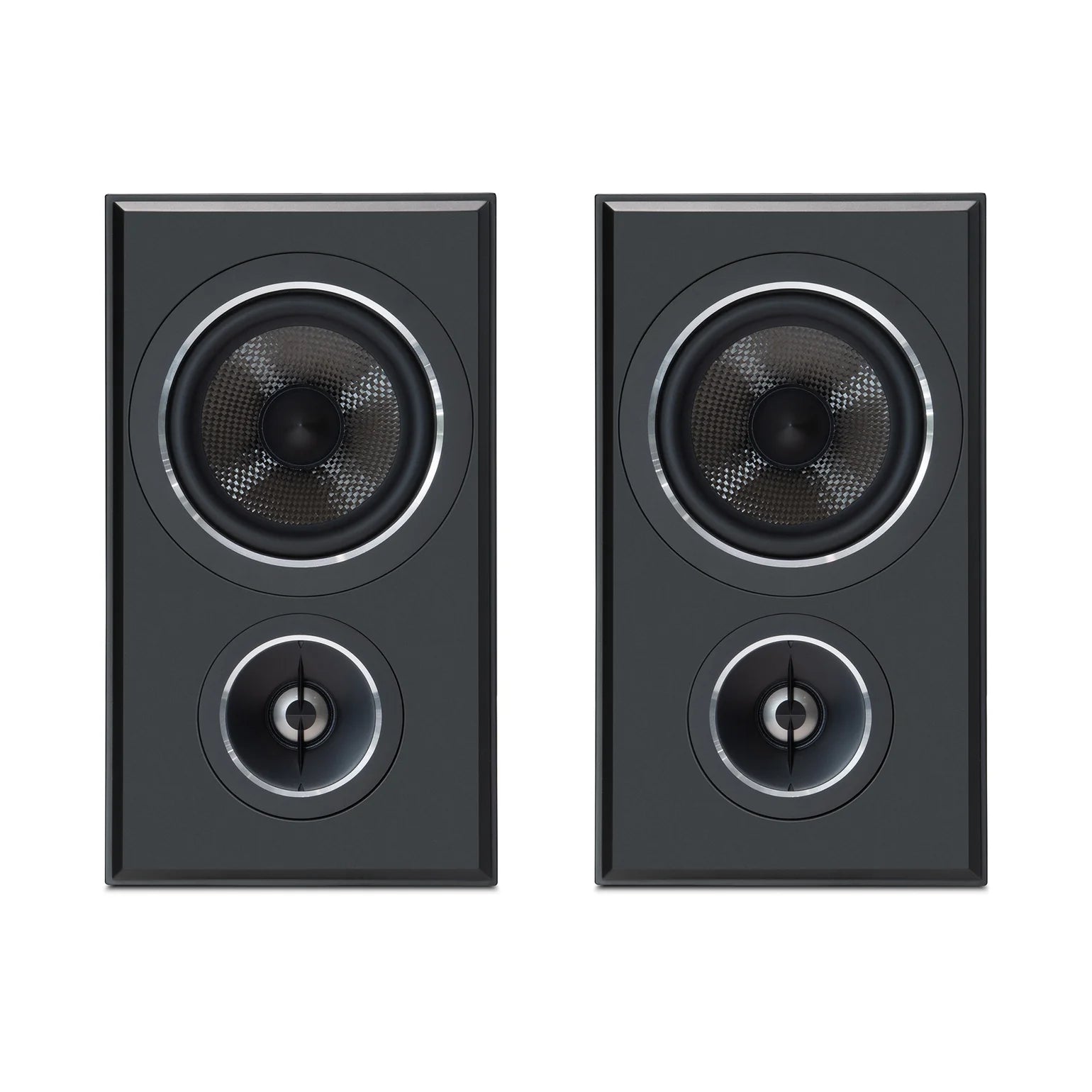 With minimalist elegance offered through a slim and compact cabinet design and neutral Satin Black and White finish options, the B50 bookshelf speakers integrate seamlessly into any space. Aluminum trim and chamfered edges not only captivate the eye but also sync perfectly with the PWM Series, creating an entertainment oasis at home.