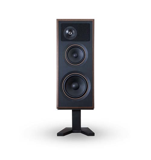 - Retro-styled open-grained walnut veneer enclosure and dedicated speaker stands